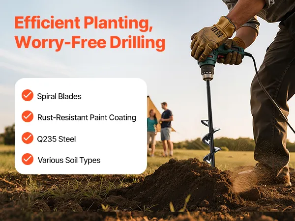 Robuuste duurzaamheid: Deze tuinboor is gemaakt van hoogwaardig staal met een roestbestendige coating en is gebouwd om lang mee te gaan. Het spiraalvormige ontwerp maakt plantgaten snel en efficiënt in vergelijking met handmatig graven.
