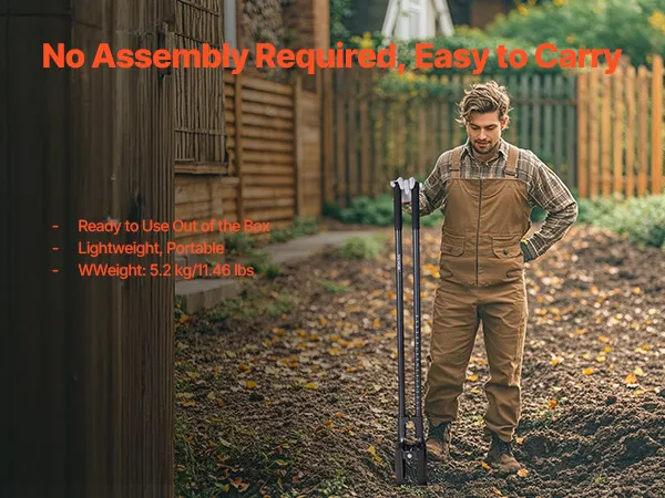 This manual post hole digger features a simple design, ready to use right out of the box, with no complicated assembly. Lightweight and easy to carry, it's ideal for any job site, whether in your backyard or on a remote farm.