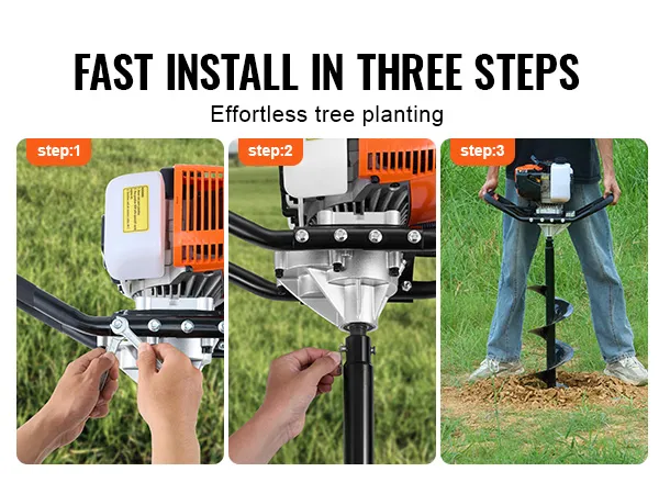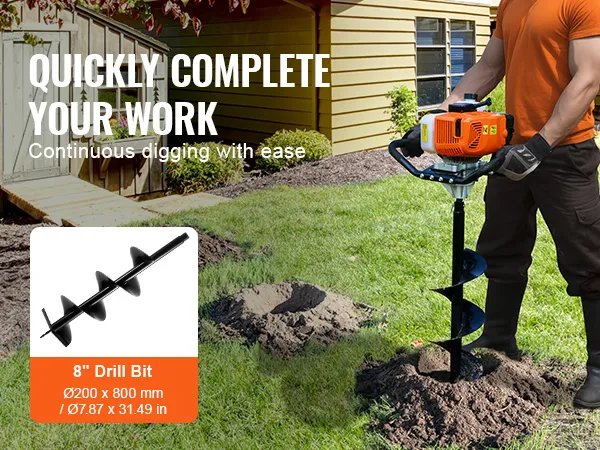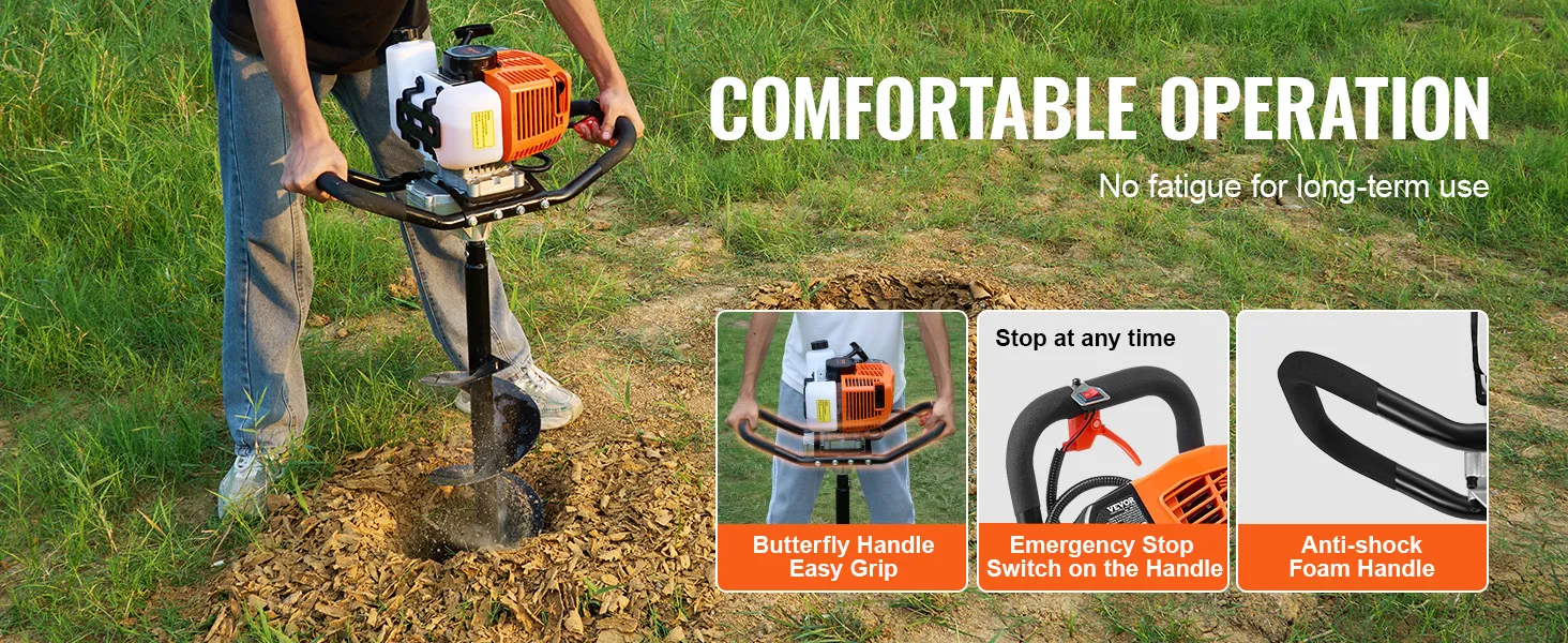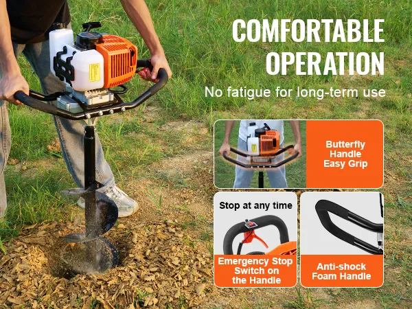 Deze grondboor heeft een krachtige motor, is uitgerust met een boor om gemakkelijk aan de boorbehoeften te voldoen, en heeft een anti-vibratieschuimhandgreep en een vlinderhandgreepontwerp voor een comfortabele bediening.