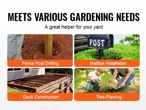 Multifunctionele toepassingen: Uitgerust met een boor die diepere boorwerkzaamheden mogelijk maakt om aan een verscheidenheid aan toepassingsscenario's te voldoen, geschikt voor het boren van gaten voor hekpalen, het opzetten van brievenbussen, het bouwen van patio's, het planten van een groot aantal bomen en vele andere gazontoepassingen , wordt onverpakt geleverd en kan na ontvangst van het product direct gebruikt worden.
