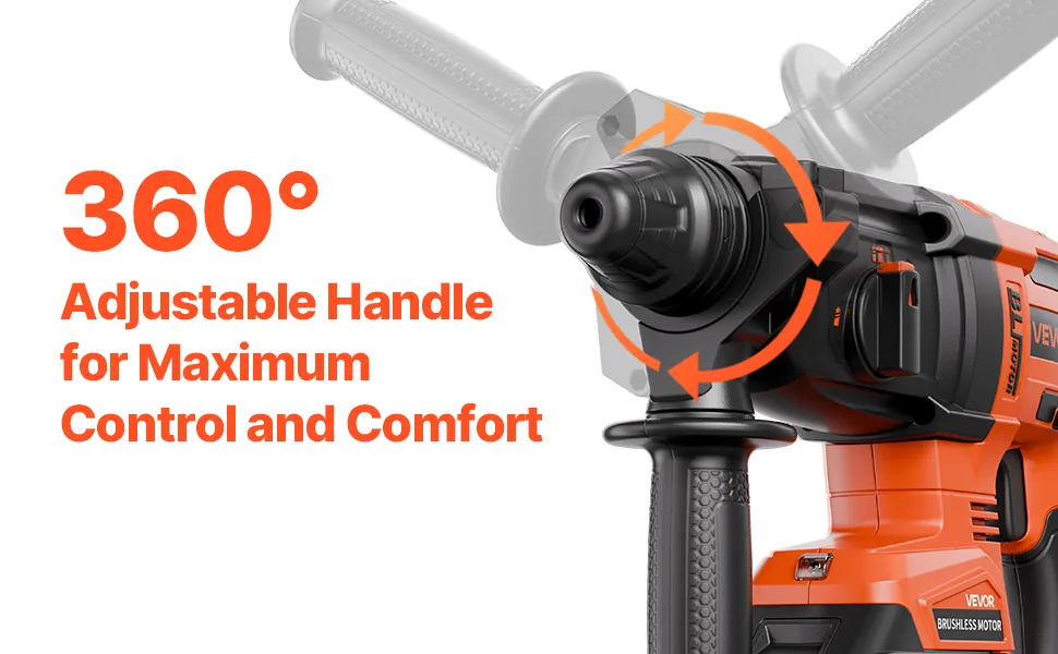 Ontworpen voor optimale controle: de 360° verstelbare handgreep biedt meer comfort, minder vermoeidheid en betere controle tijdens langdurig gebruik. De SDS-Plus boorkop maakt snelle en veilige bitwissels mogelijk voor een snelle projectvoortgang. Geavanceerde warmteafvoer verlengt de levensduur van het gereedschap. Werk met vertrouwen! De omkeerfunctie zorgt voor een nauwkeurige bitplaatsing en eenvoudig verwijderen van de bevestigingsmiddelen.
