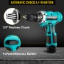 Een 2/5-inch klauwplaat met ratel is voorzien van een automatische asvergrendeling die zorgt voor een grotere grijpkracht en waarmee bits gemakkelijk met één hand kunnen worden verwisseld. Met de rotatieschakelaar kunt u naar voren of naar achteren draaien, afhankelijk van uw doeleinden.