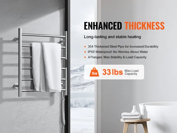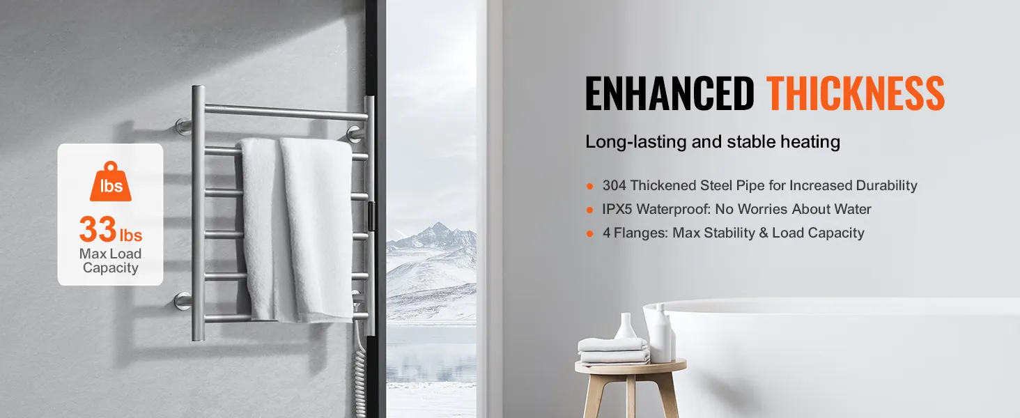 • Stable Load Capacity: Enhanced with a flange for increased stability and load-bearing capacity, this towel heater offers reliable performance. It is a perfect solution for warming towels and clothes.