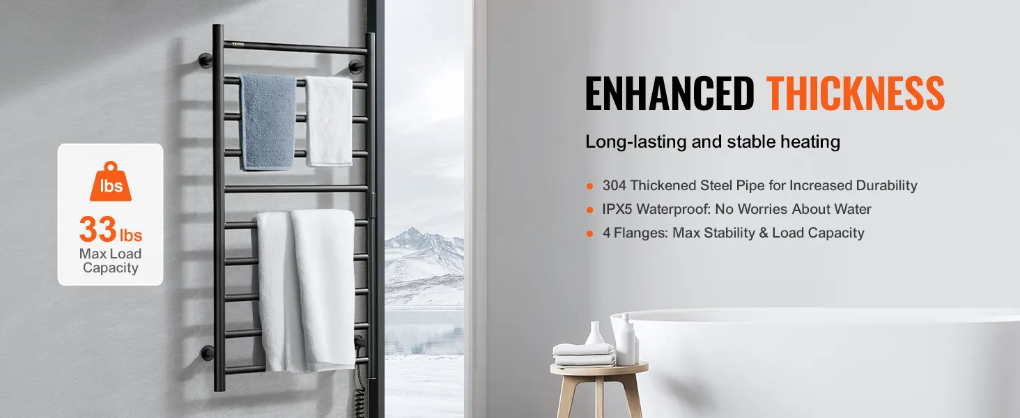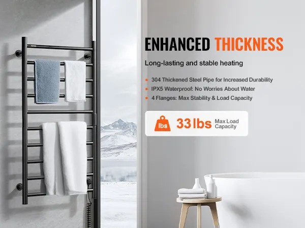 • Stable Load Capacity: Enhanced with a flange for increased stability and load-bearing capacity, this towel heater offers reliable performance. It is a perfect solution for warming towels and clothes.