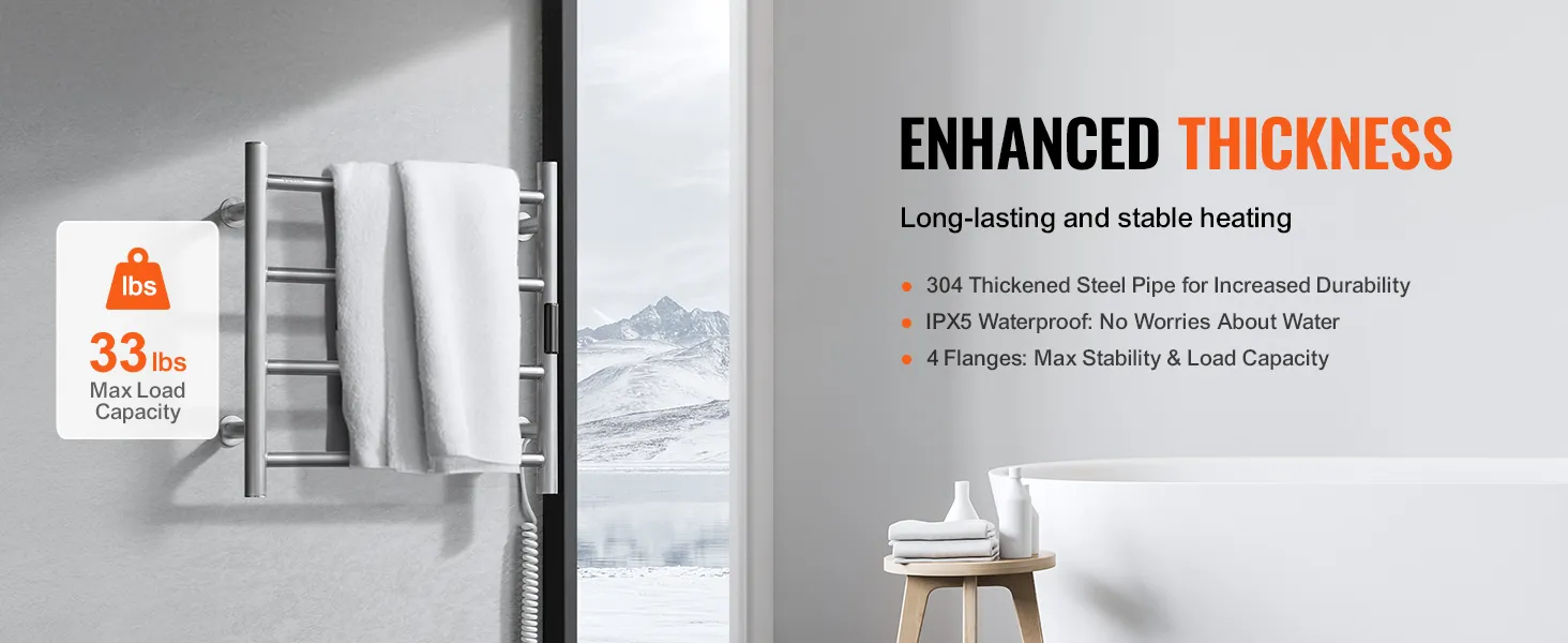 • Stable Load Capacity: Enhanced with a flange for increased stability and load-bearing capacity, this towel heater offers reliable performance. It is a perfect solution for warming towels and clothes.