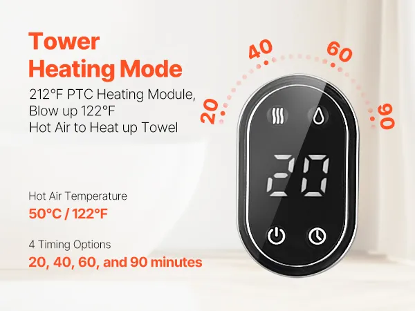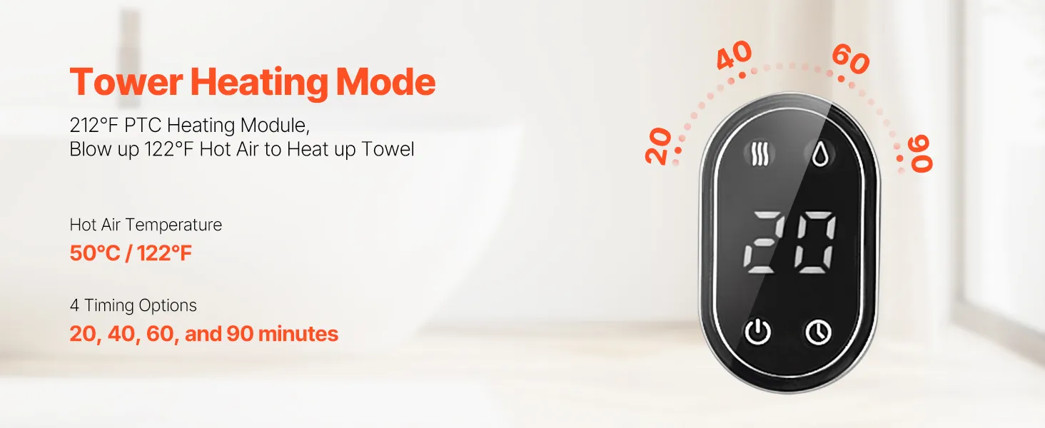 Comfortabele bediening: met 4 verwarmingsniveaus (20/30/60/90 minuten) kunt u de verwarmingstijd aanpassen aan uw behoeften. Er zijn geen wachttijden, de bediening is eenvoudig en ook in het hectische leven van alledag kun je gemakkelijk genieten van warme handdoeken.