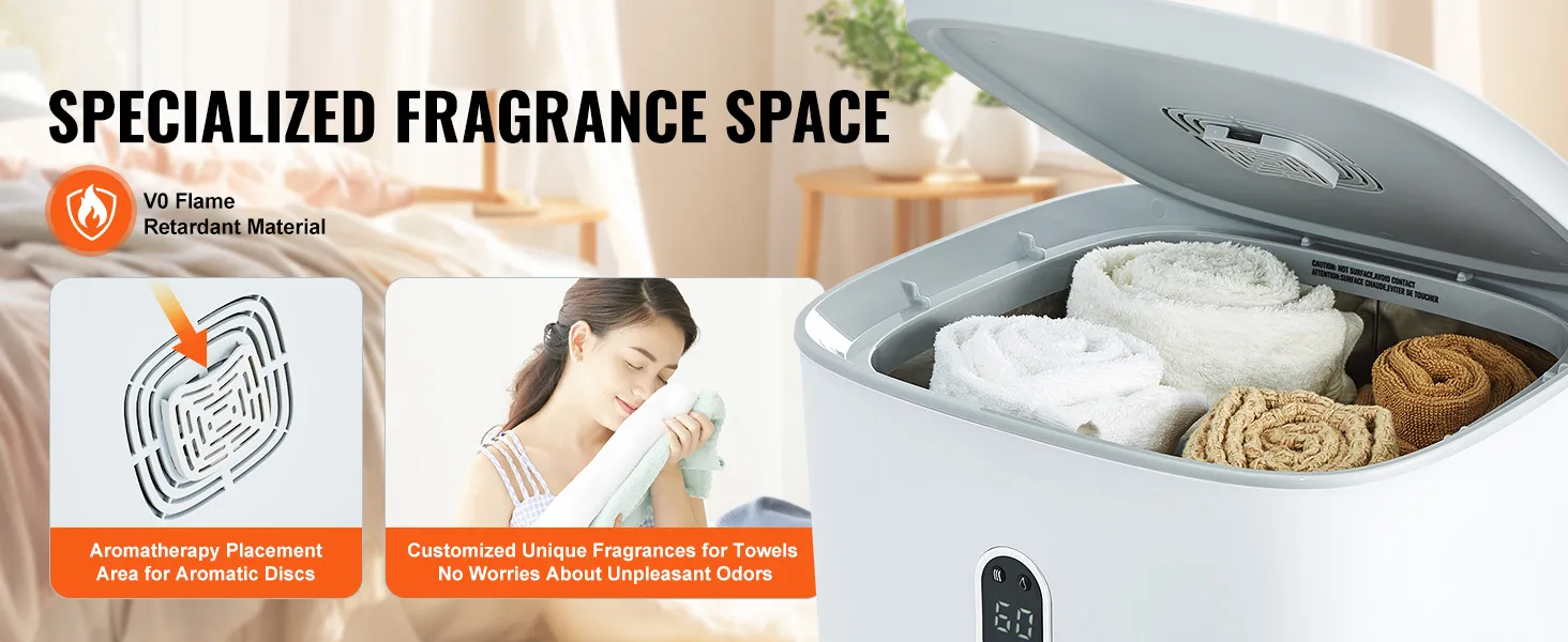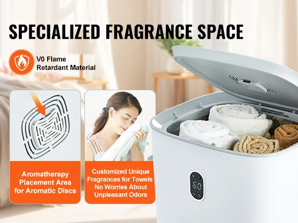 Individuele geur: de intelligente handdoekverwarmer is uitgerust met een geurzone. Om uw handdoeken en dekens een unieke geur te geven, kunt u diverse geurschijfjes of -pads gedrenkt in etherische oliën plaatsen. Geniet elke keer dat je het gebruikt van een heerlijke geur.
