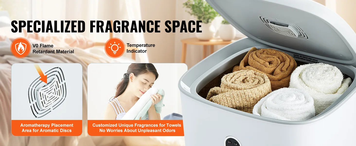 Individuele geur: de intelligente handdoekverwarmer is uitgerust met een geurzone. U kunt verschillende geurschijfjes of -pads gedrenkt in etherische oliën plaatsen om uw handdoeken en dekens een unieke geur te geven. Geniet elke keer dat u uw handdoeken en beddengoed gebruikt van een heerlijke geur.