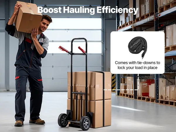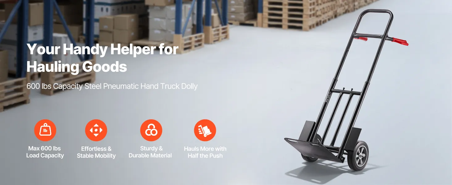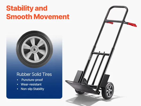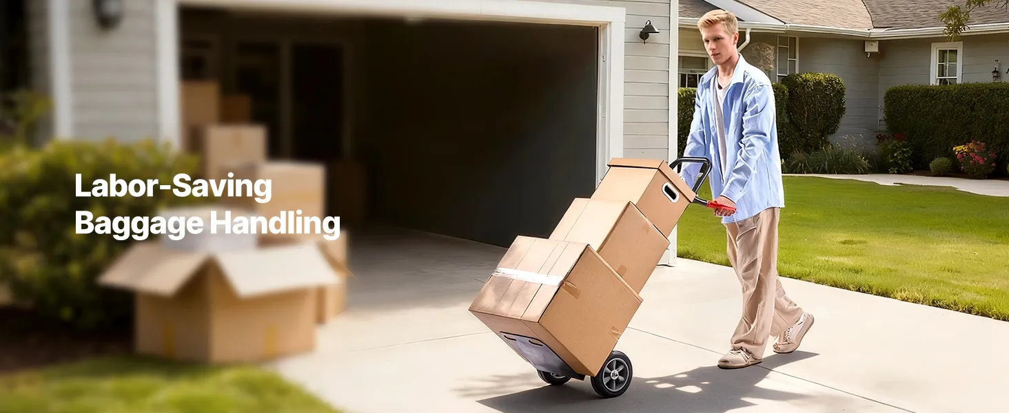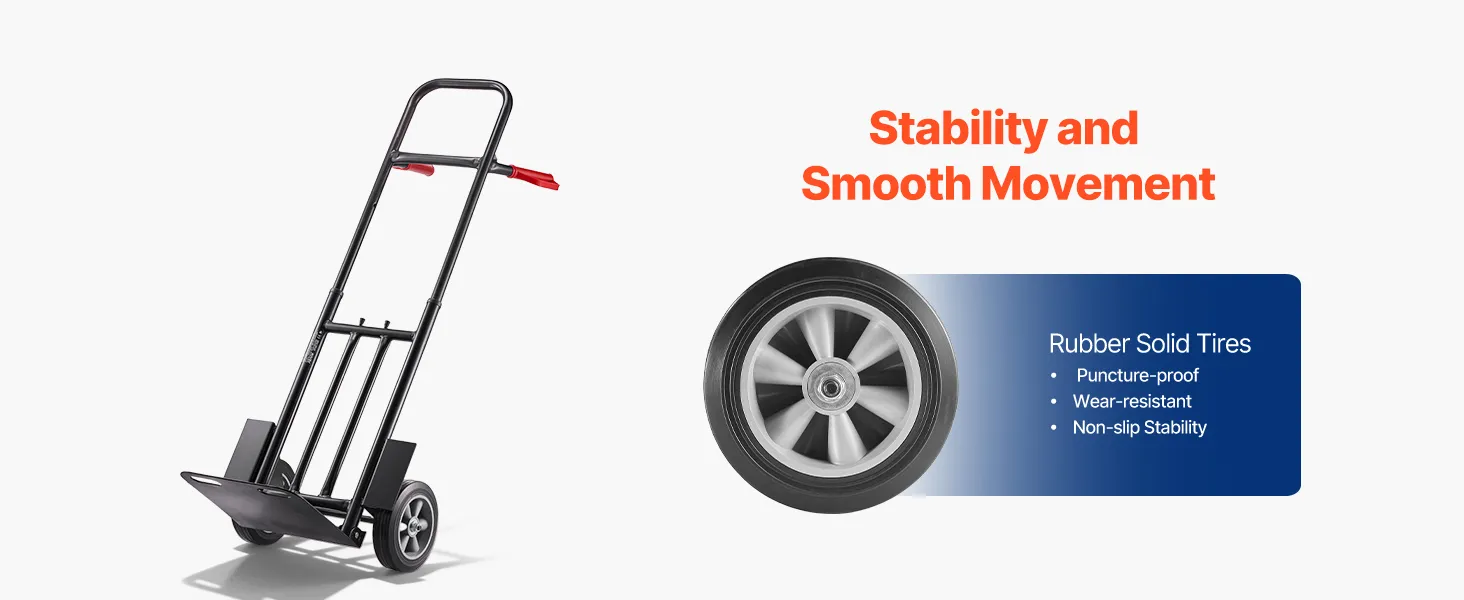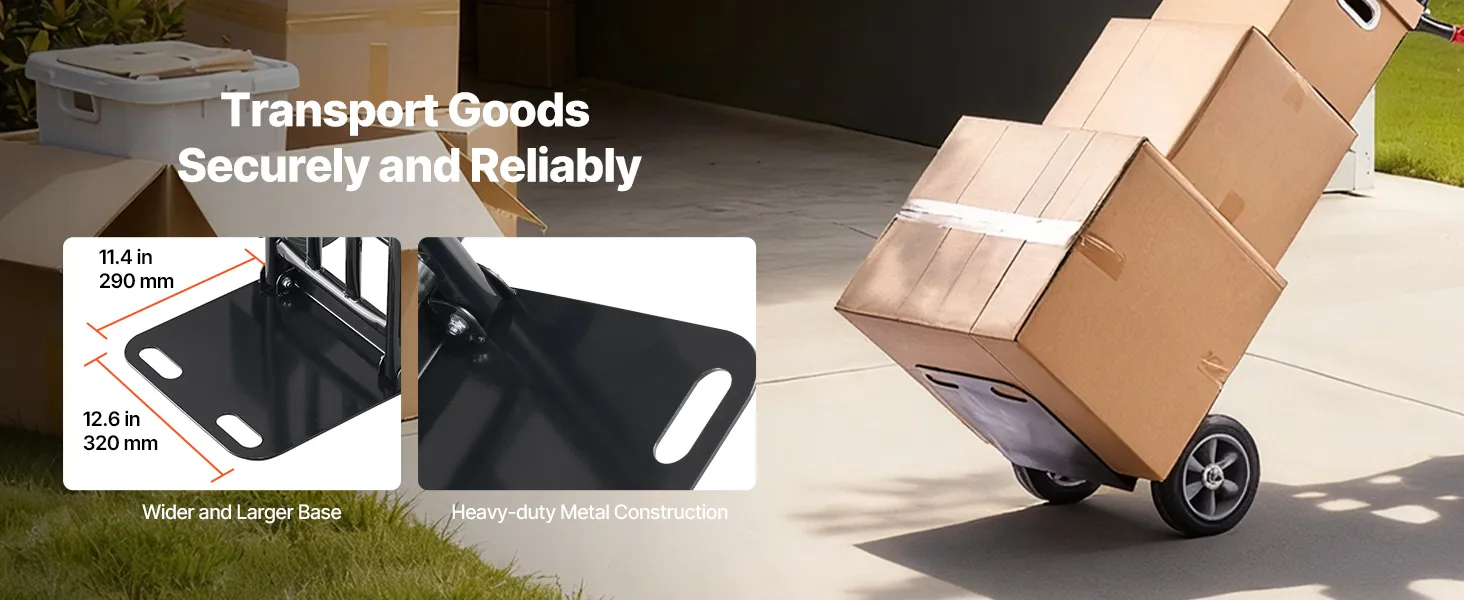 Ergonomisch ontwerp: Deze vrachtwagendolly is voorzien van een ergonomische, antislip siliconen handgreep voor een veilige en comfortabele grip. De verstelbare handgreep is aanpasbaar aan verschillende hoogtes, wat het hanteren gemakkelijker en minder vermoeiend maakt – ideaal voor leveringen, verhuizingen en dagelijks transport.