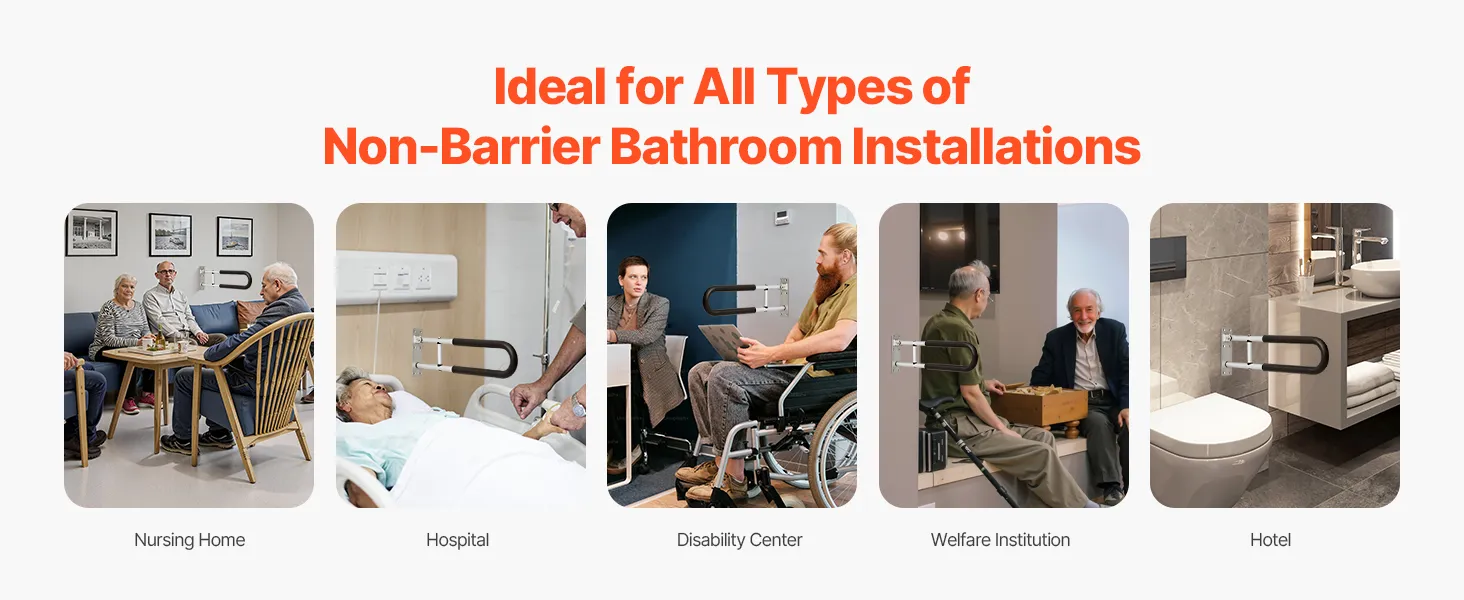 Designed as a non-barrier safety transfer bar for individuals with disabilities or leg injuries, our handrails are not only ideal for home bathrooms but also suitable for use in nursing homes, hospitals, disability centers, welfare institutions, and hotel bathrooms.