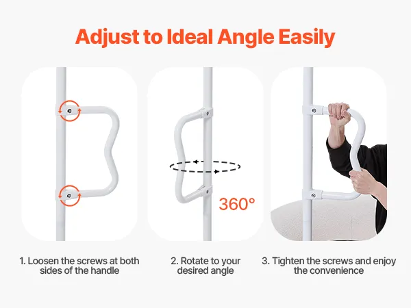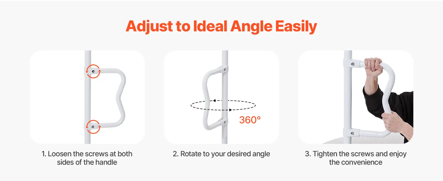 Rotating Function: The transfer pole offers a 360° rotation feature. Simply adjust the tightness of the upper and lower screws to set the handrail. It locks at every 45° interval