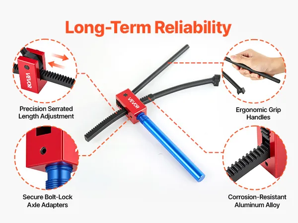 De draagbare bandenwisselaar voor crossmotoren is voorzien van asadapters van aluminiumlegering. Deze zijn bestand tegen oliecorrosie en vervorming onder constante druk, waardoor een lange levensduur gegarandeerd is.