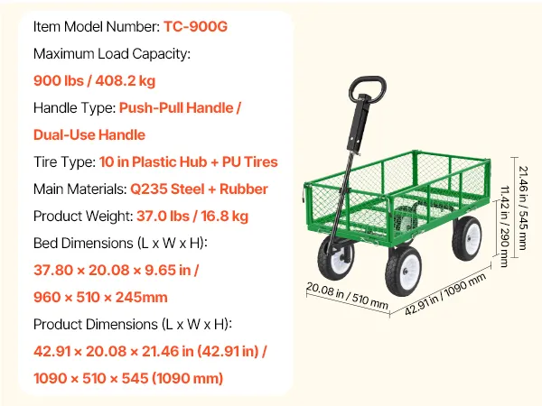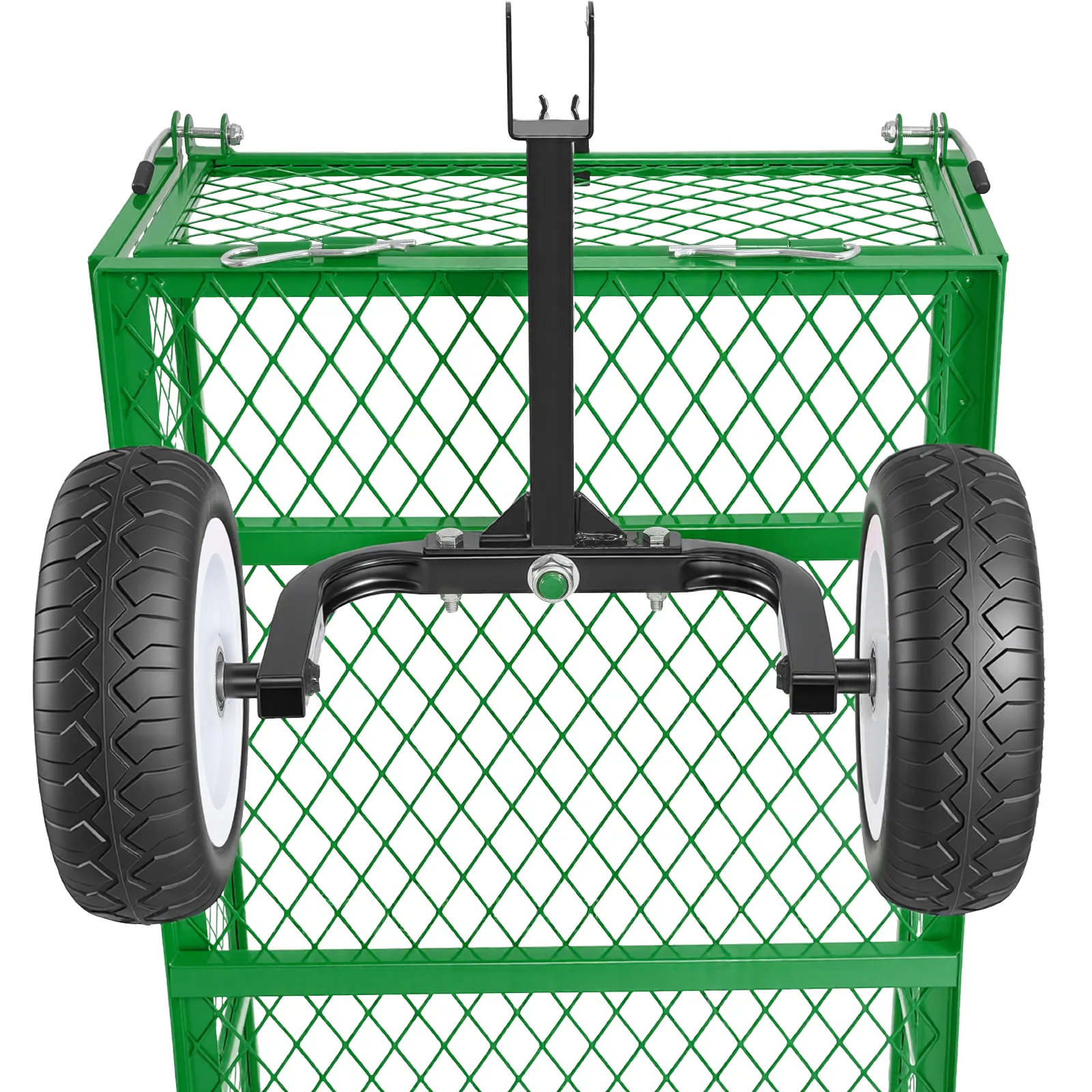 VEVOR Handkar, 408,2 kg draagvermogen, tuinkar met PU-banden, stalen transportkar met verstelbare handgreep, afneembare zijpanelen, gereedschapskar voor bevestiging aan ATV of tractor, groen