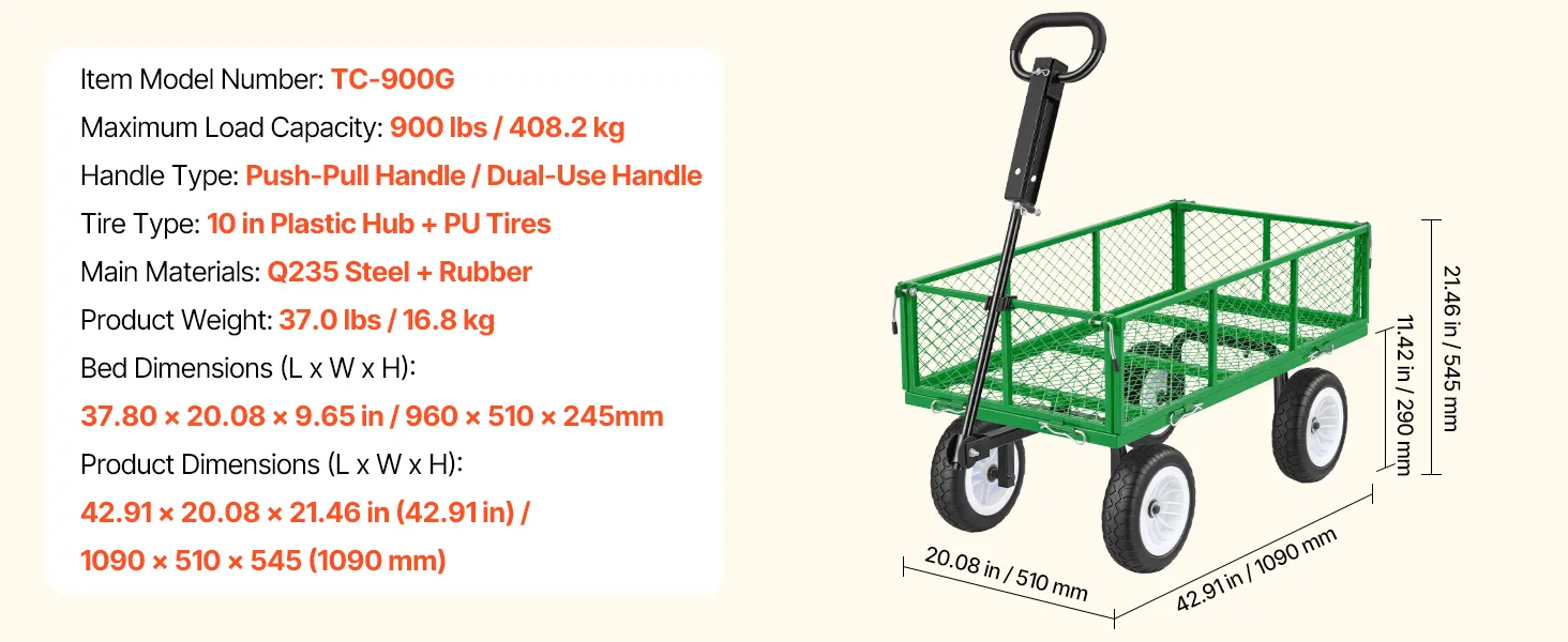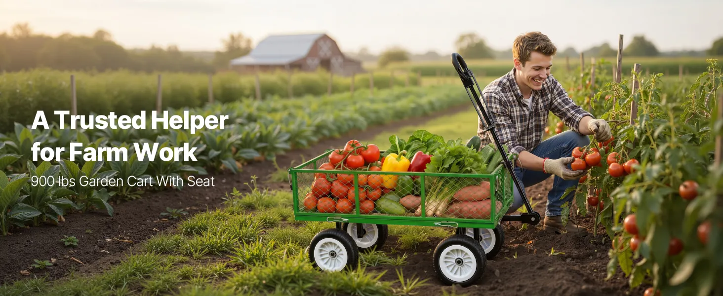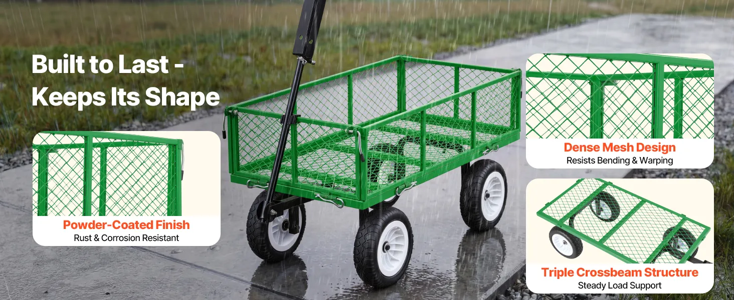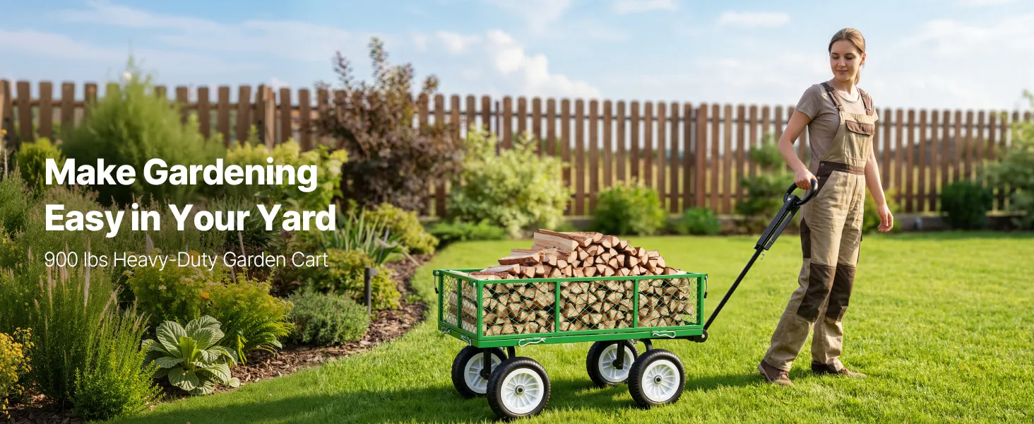 Draagvermogen van 408,2 kg (900 lbs): Deze tuinkar is ontworpen voor het gemakkelijk vervoeren van zware voorwerpen en is ideaal voor grond, stenen en tuingereedschap. Een verstevigde dwarsbalk tussen de wielen verbetert de stabiliteit en stevigheid. Let op: Om de levensduur van de kar te verlengen, wordt continue overbelasting afgeraden.