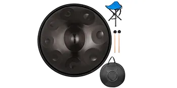 Hand pan is a musical instrument in the idiophone class. Made of nitrogen steel material, constructed from two half-shells of deep drawn with hollow inside, it is designed for beautiful outlook and durability. Hand pan in D Minor 9 notes, including 1 center note and 8 tone fields for beautiful vibration sound. A great choice for street performances, festival celebration, friends & families gathering, etc.