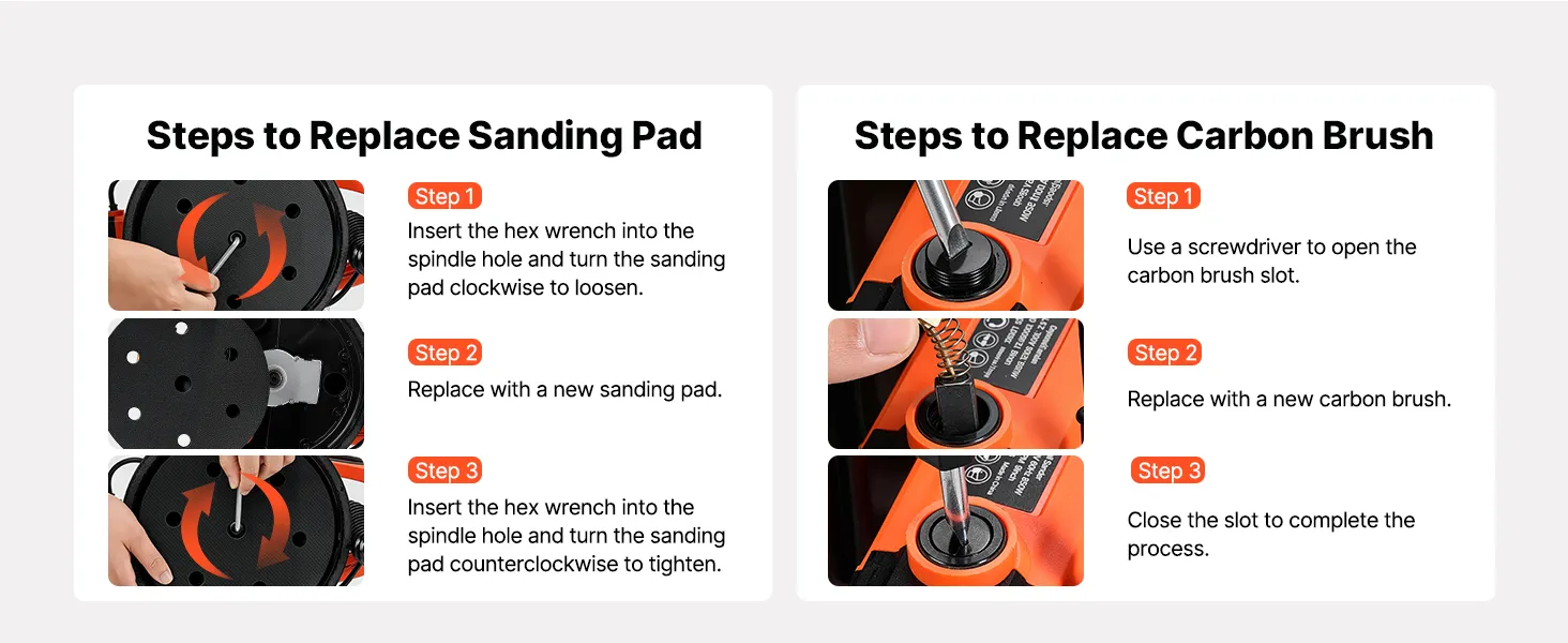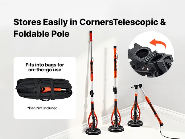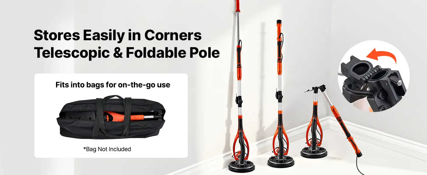 Opvouwbaar en ruimtebesparend: De schuurmachine met lange steel is voorzien van een telescopische steel die verstelbaar is van 1,4 tot 1,8 m, waardoor hij gemakkelijk aan verschillende werkhoogtes kan worden aangepast. Dankzij de opvouwbare handgreep kan hij compact worden opgevouwen voor ruimtebesparende opslag.