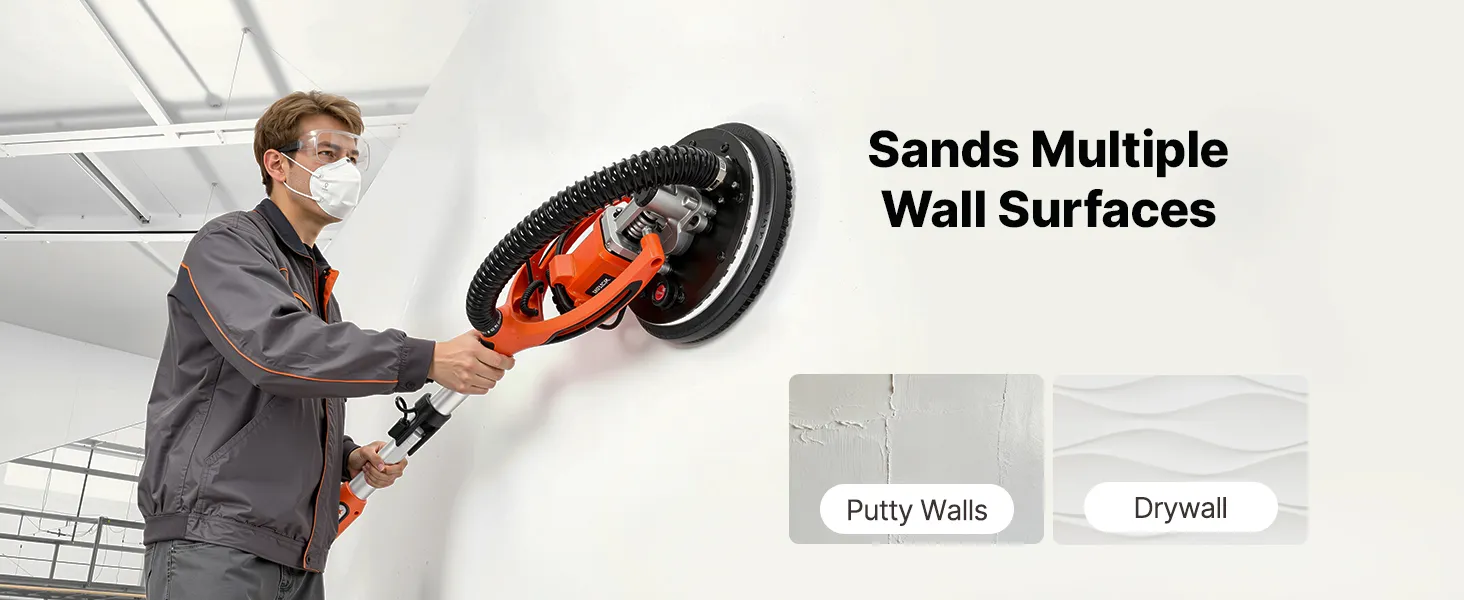 Deze muurschuurmachine past zich aan verschillende hoeken aan, waardoor het schuren van hoeken en randen moeiteloos verloopt. Hij bereikt gemakkelijk muurhoeken, raamkozijnen en plafondranden zonder ook maar één plekje over te slaan.