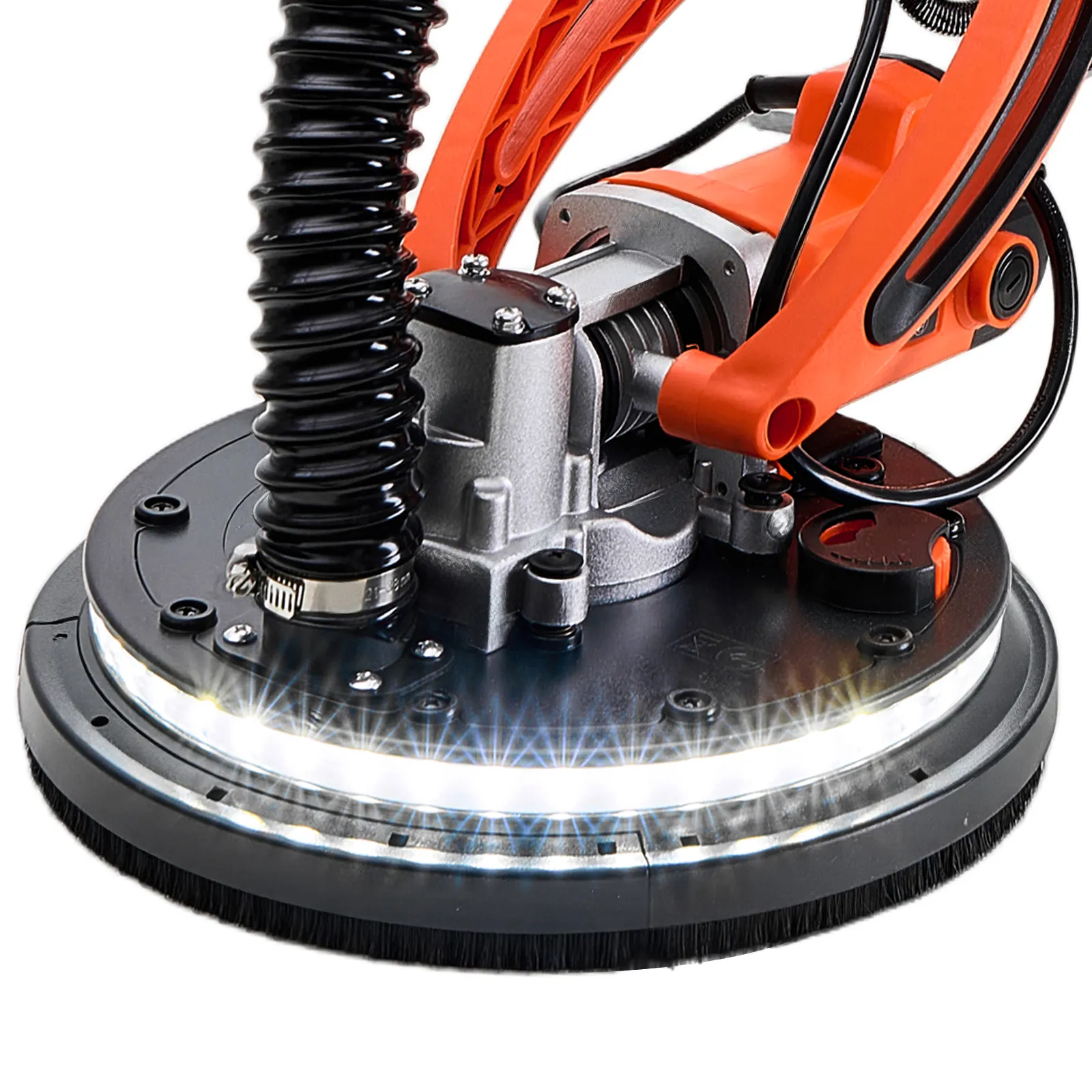 Deze gipsplaatschuurmachine biedt variabele snelheid, een inklapbare en telescopische verstelling en is voorzien van een 360° LED-ringlamp. Hij is ideaal voor het schuren van muren en plafonds.