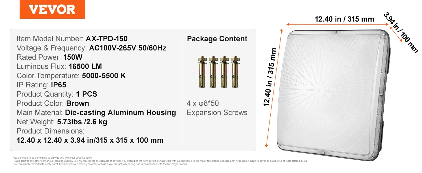 Illuminate with Confidence: 1-Pack 150W Canopy Lights