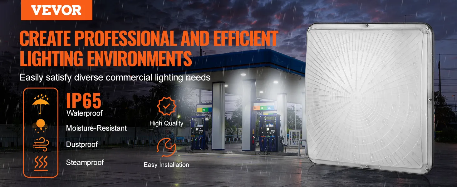 Versatile for Any Environment: Illuminate your space with confidence using our LED canopy lights, ideal for car washes, warehouses, barns, walk-in freezers, gas stations, parking lots, industrial kitchens, stairwells, tunnels, and outdoor terraces. Designed for spaces that require both humidity resistance and powerful illumination, they offer unmatched versatility.