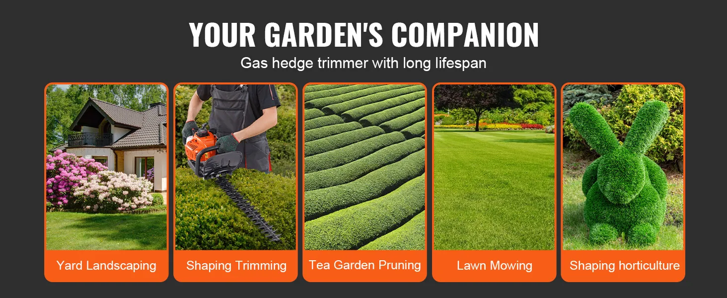 Veelzijdige toepassing: onze bosmaaier is ideaal voor het trimmen en onderhouden van tuinen, boomgaarden, landschapsgebieden, theetuinen, wegen en snelweggazons. Perfect voor al uw tuin- en landschapsbehoeften.