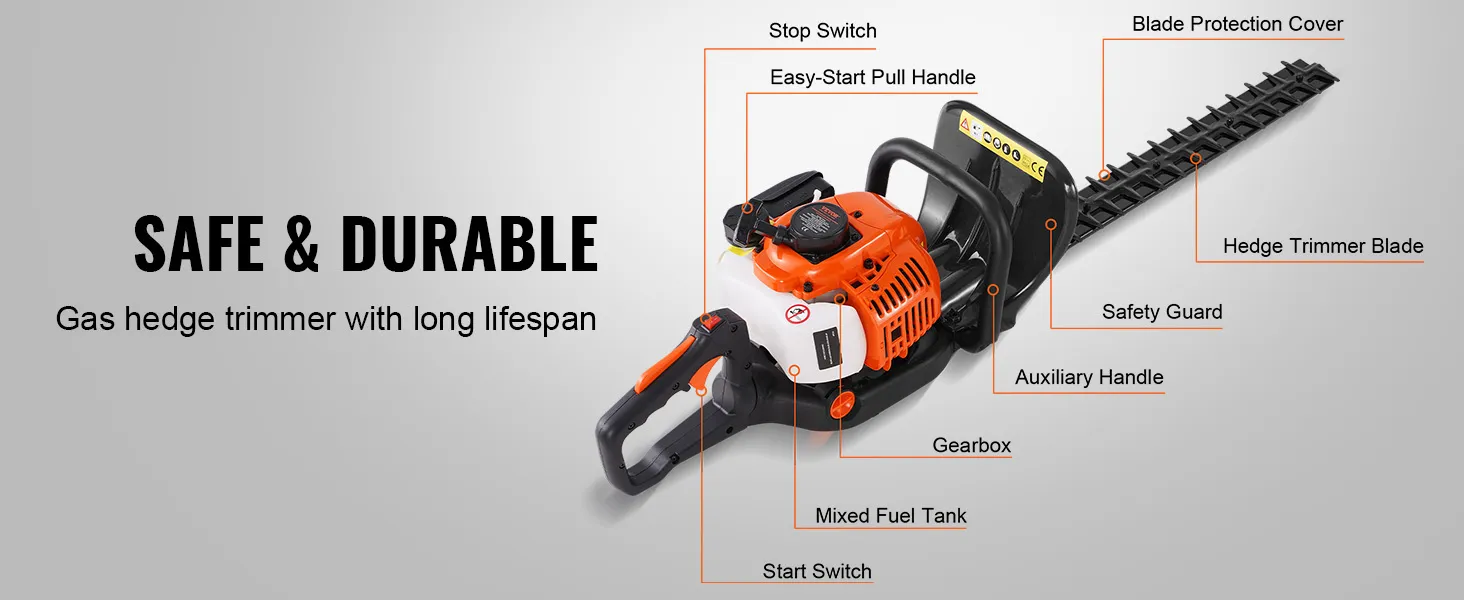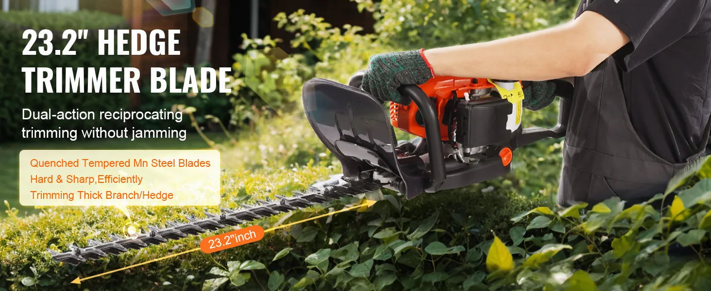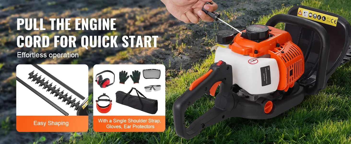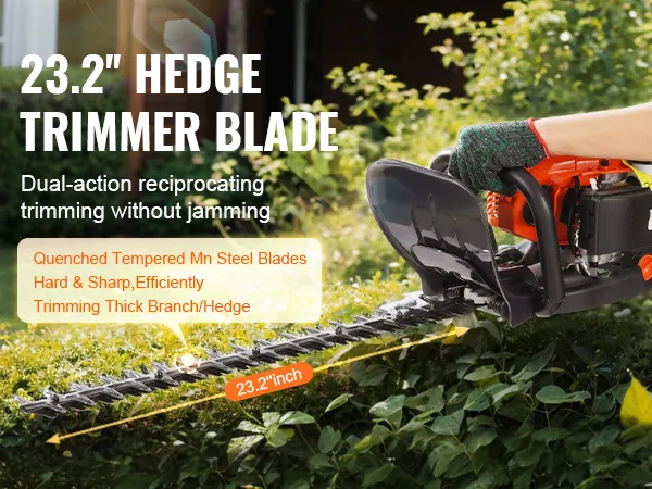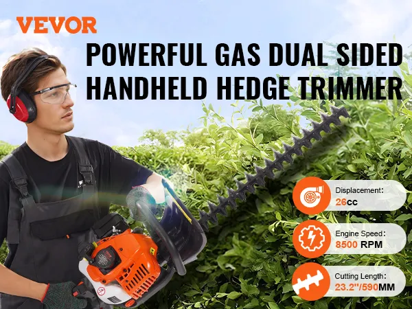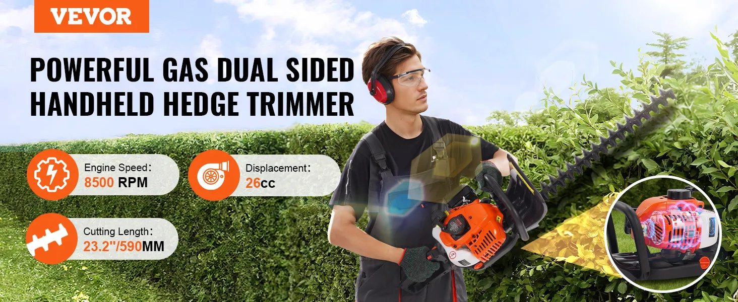 VEVOR 26CC 2-takt benzine heggenschaar, heggenschaar met dubbelzijdig mes met dubbele werking, 180° verstelbare trimkop, heggenschaar, geschikt voor het snoeien van struiken en lage struiken