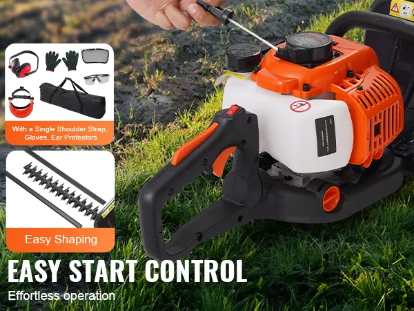 Comfortabel gebruik: onze benzine-aangedreven heggenschaar wordt geleverd met een enkele schouderriem die bediening in de hand ondersteunt en handvermoeidheid vermindert. Het lichtgewicht ontwerp maakt het gemakkelijk te gebruiken. Inclusief beschermende handschoenen en gehoorbescherming voor veiligheid en geluidsreductie om een comfortabele werkervaring te garanderen en werkvermoeidheid te minimaliseren.