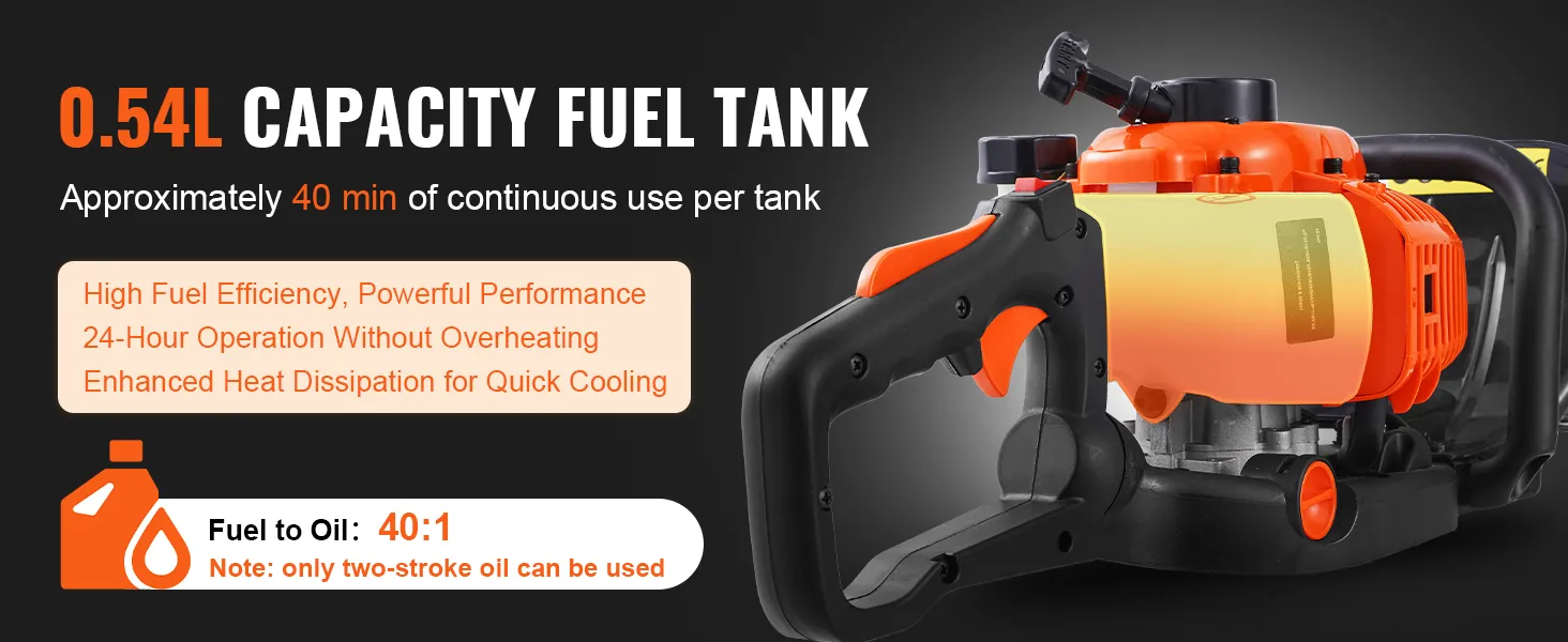 Eenvoudig in gebruik en lange looptijd: het hoge magnetische ontstekingssysteem zorgt voor een gemakkelijke start en een soepele werking. De 180° verstelbare heggenschaarkop maakt nauwkeurig trimmen onder verschillende hoeken mogelijk. De machine wordt aangedreven door brandstof en kan tot 40 minuten onafgebroken werken zonder regelmatig bij te tanken. Gemakkelijk en handig in gebruik.