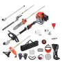 6-in-1 multifunctioneel: dit veelzijdige gereedschap bestaat uit een heggenschaar, een snoeischaar, een hoogsnoeier/kettingzaag, een bosmaaier, een metalen mes en een trimmerkop. Hij is perfect voor het snoeien van struiken, takken, theetuinen, het vormgeven van groene planten, het zagen van hout, het maaien van gras en het trekken van onkruid. Het is een uitstekende hulp voor het onderhoud van uw tuin, tuin, heggen en parkgazons.
