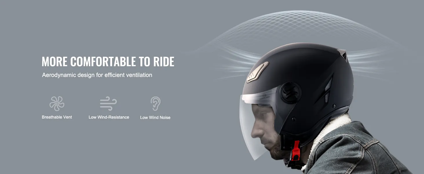 Ademend en niet benauwd: De motorhelm is aerodynamisch ontworpen en heeft meerdere ventilatiegaten aan de voor- en bovenkant om windgeruis en windweerstand effectief te voorkomen. Het houdt niet alleen uw hoofd koel en comfortabel, maar zorgt ook voor een optimale gewichtsverdeling.