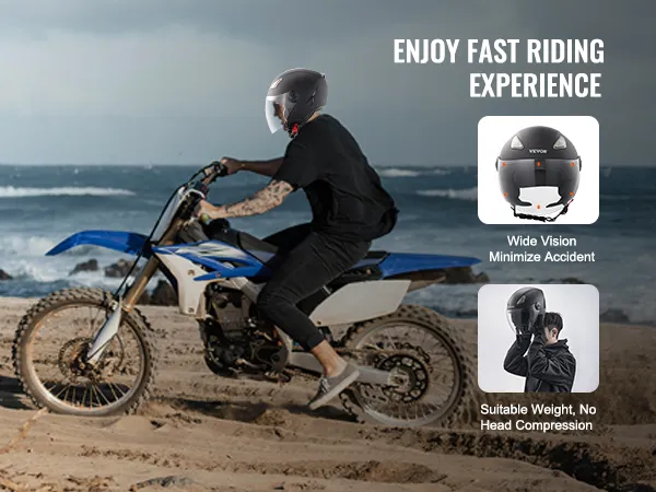 Open Vision: Equipped with a large transparent lens, the large transparent lens design in the motorcycle helmet not only effectively safeguards against wind, sand and flying creatures, but also maintains an open vision and minimizes the probability of accident.
