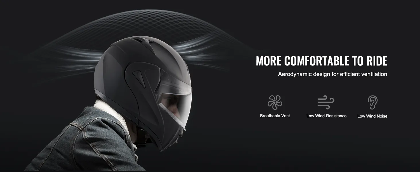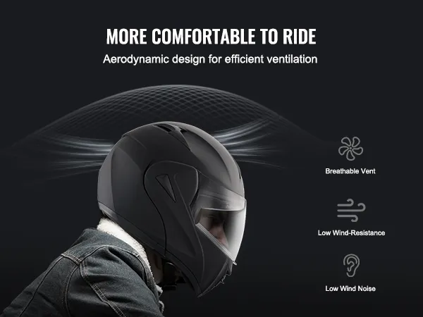 Ademend en niet benauwd: De motorhelm is aerodynamisch ontworpen en heeft meerdere ventilatiegaten aan de voor- en bovenkant om windgeruis en windweerstand effectief te voorkomen. Het houdt niet alleen uw hoofd koel en comfortabel, maar zorgt ook voor een optimale gewichtsverdeling.