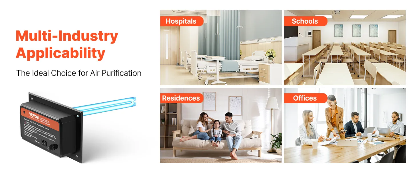 Breed scala aan toepassingen: Met een effectief reinigingsoppervlak van maximaal 140 vierkante meter is deze luchtreiniger geschikt voor grote HVAC-systemen in scholen, ziekenhuizen, woningen, kantoren en meer.