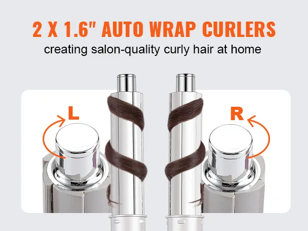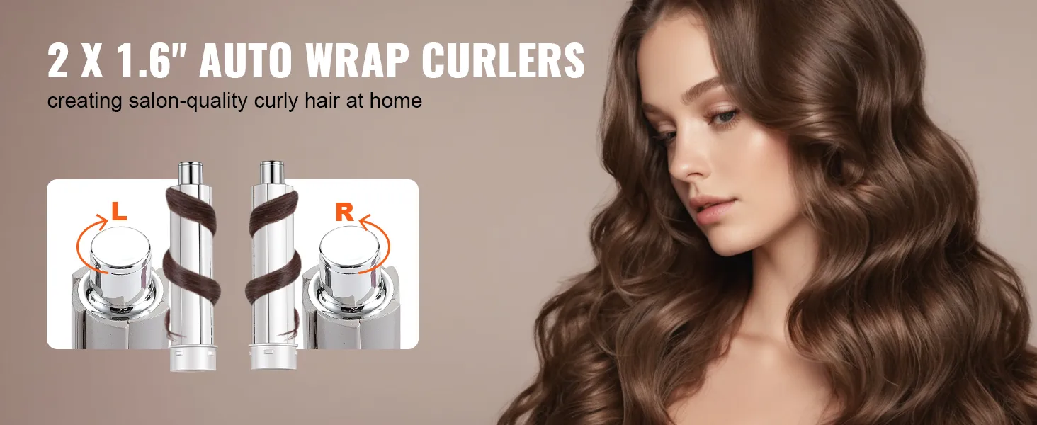Onze heteluchtstyler heeft krulspelden aan de linker- en rechterkant. Het bedekt en verwarmt automatisch de haarlokken, zodat u moeiteloos prachtige krullen in elke stijl kunt creëren. Bespaar tijd en moeite met deze handige functie.