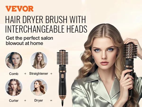 Veelzijdige styling: met 3 verwisselbare opzetborstels biedt de VEVOR roterende föhnborstel meer stylingopties! Twee opzetborstels van 50 mm / 2 inch creëren moeiteloos volumineuze krullen of grote golven; De opzetborstel van 40 mm / 1,6 inch is perfect voor het toevoegen van volume, het steil maken van haar of het creëren van medium golven, en voldoet aan een breed scala aan stylingbehoeften.