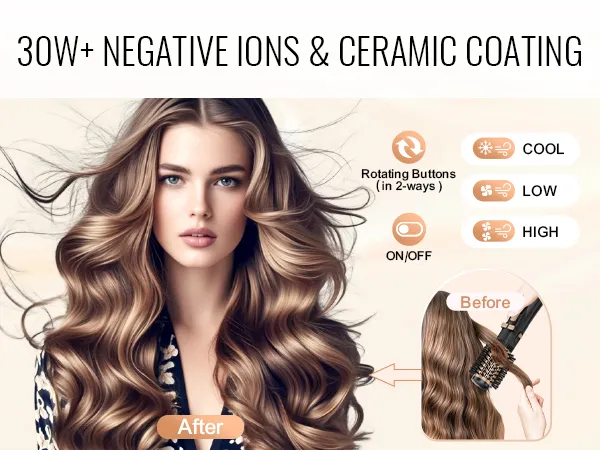 De föhnborstel van VEVOR combineert een verbeterde keramische coating en sterk geconcentreerde negatieve ionen (30W+) voor een snelle, gelijkmatige warmteverdeling die hitteschade minimaliseert.