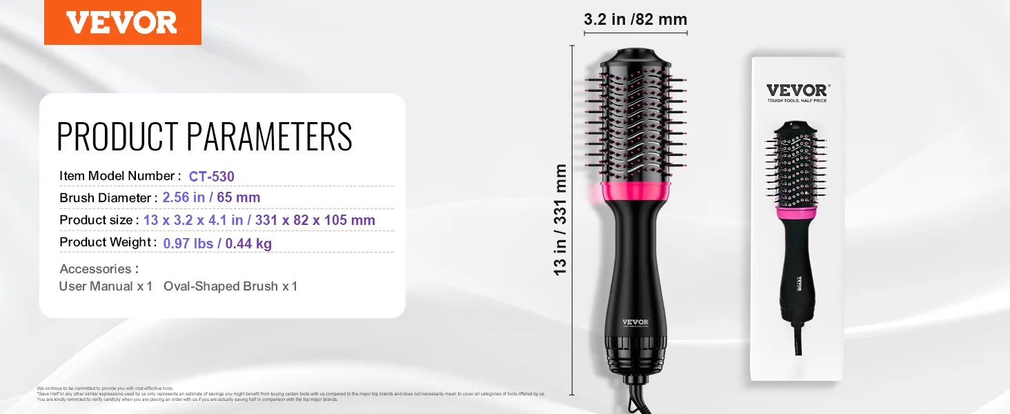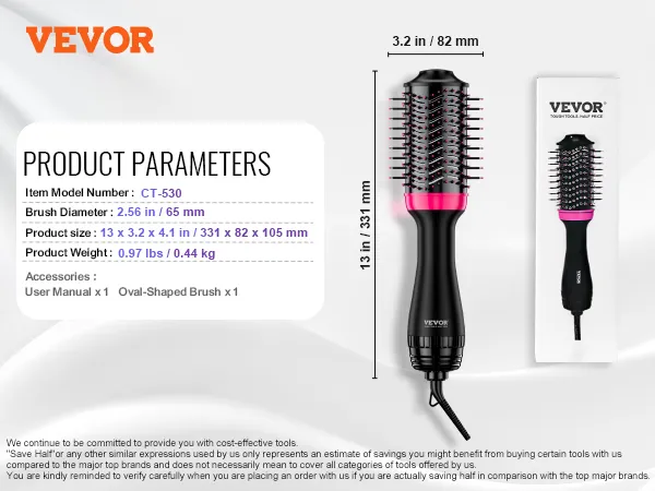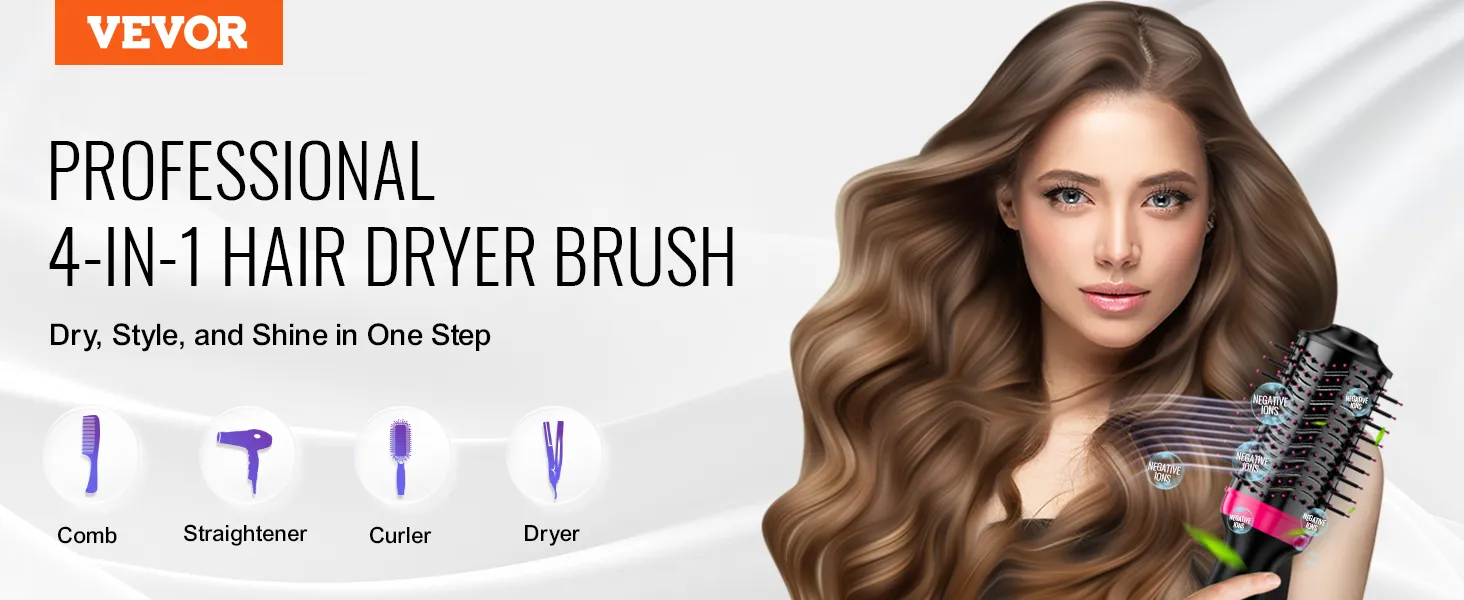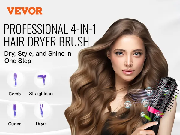 Voed en bescherm je haar: Zeg vaarwel tegen hitteschade veroorzaakt door traditionele stylingtools. VEVOR Ionische Föhnborstel beschikt over 30W+ negatieve ionen en een geavanceerde keramische coating die zorgt voor een gelijkmatigere warmteverdeling en hitteschade voorkomt. Het vermindert effectief kroezen en statische elektriciteit en maakt uw haar glad, zijdeachtig en volumineus.