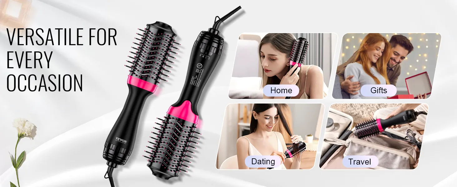 Gepersonaliseerde haarstyling: Uitgerust met 3 instelbare instellingen (koel, laag en hoog), is de VEVOR föhnborstel geschikt voor verschillende haartypes en stylingvoorkeuren. Of je nu fijn, dik, krullend of steil haar hebt, je kunt je stylingervaring eenvoudig aanpassen om de gewenste look te bereiken.