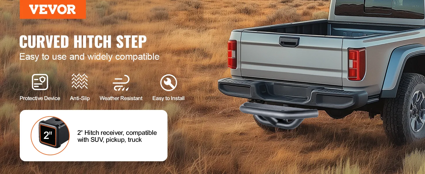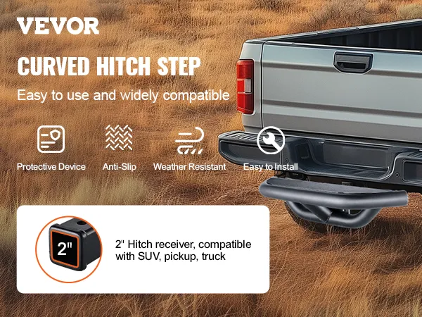 Standard 2" Receiver: This hitch step is compatible with a wide range of vehicles, including SUVs, trucks, and vans, expanding the possibilities for your vehicle. If your current hitch step is damaged, rusted, or worn out, this would be an excellent replacement choice.