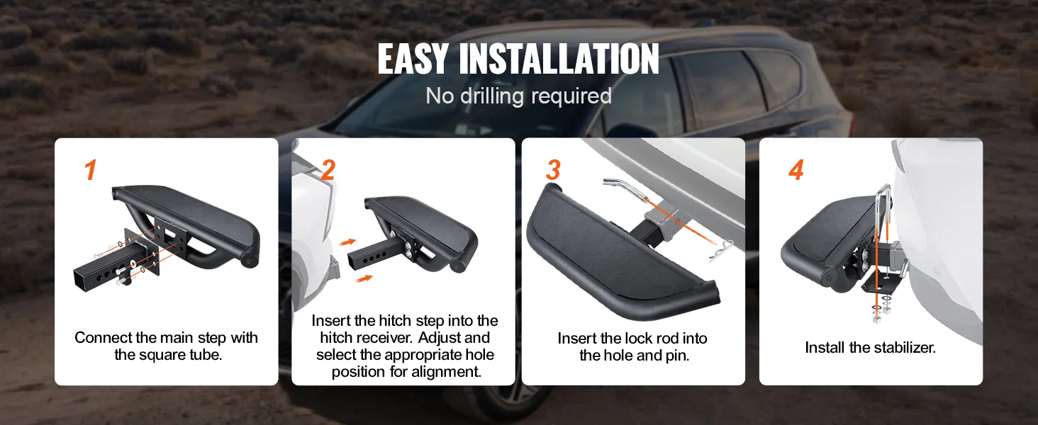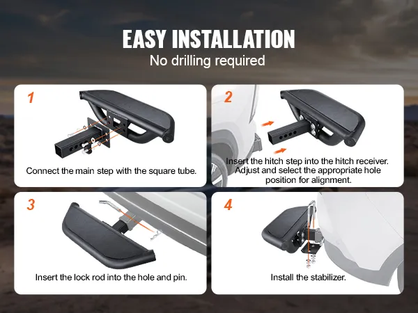 Our hitch step is easy to install with a simple design, requiring no drilling. This ensures a quick and straightforward installation process.