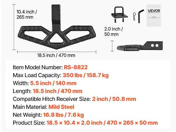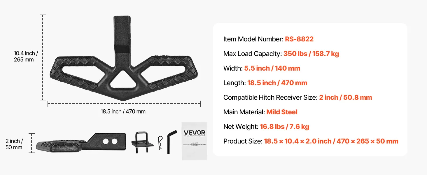 Sturdy & Durable: Made of high-strength mild steel, this tow hitch step supports up to 350 lbs (159 kg) without bending or breaking. The corrosion-resistant coating ensures durability in all weather conditions, providing long-lasting use