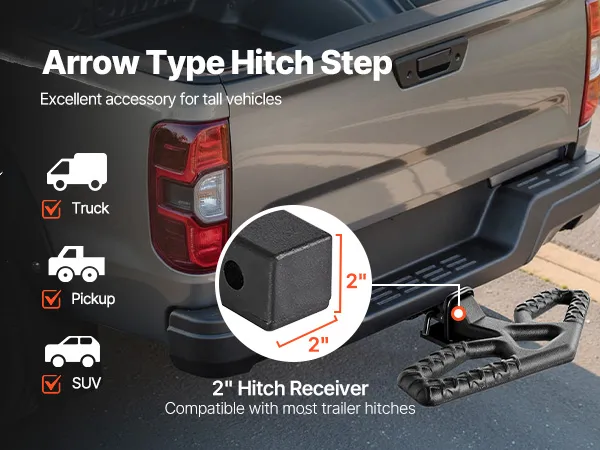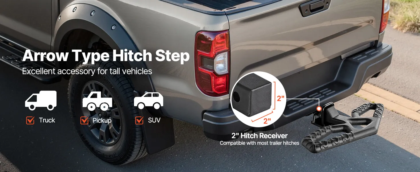 Our hitch step is compatible with a variety of vehicles, including pickup trucks, SUVs, heavy-duty off-road vehicles, and family RVs, as long as they are equipped with a 2-inch hitch receiver. It instantly enhances your vehicle's practicality and security.