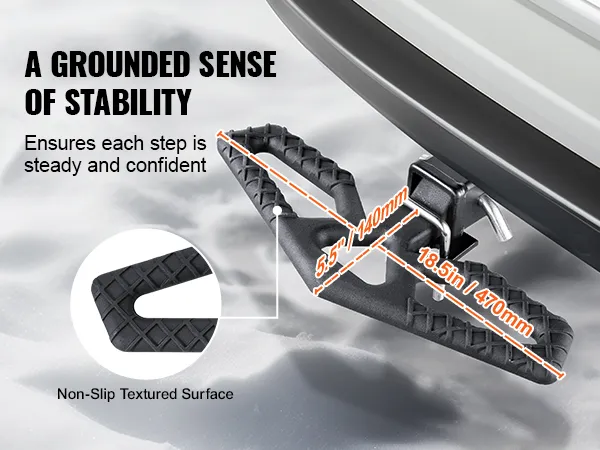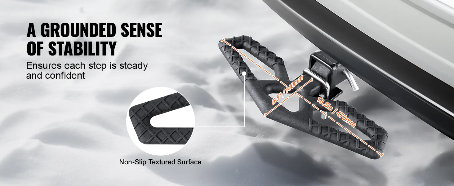 Wide & Non-Slip: This 10.4 inch (26.5 cm) wide truck hitch step features a textured anti-slip surface with a large hollow design to prevent water accumulation, ensuring secure footing