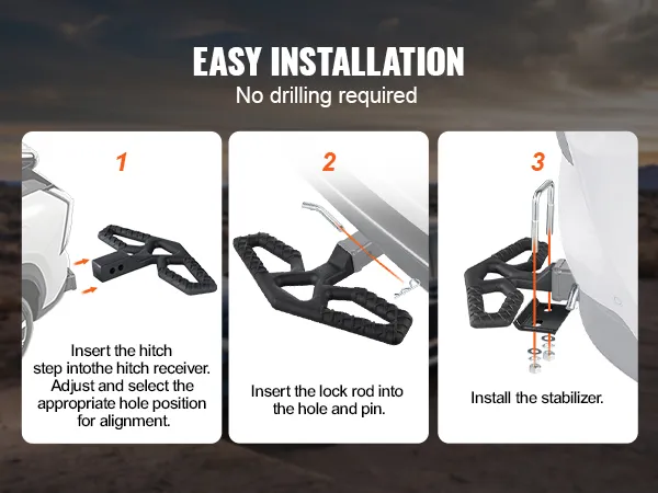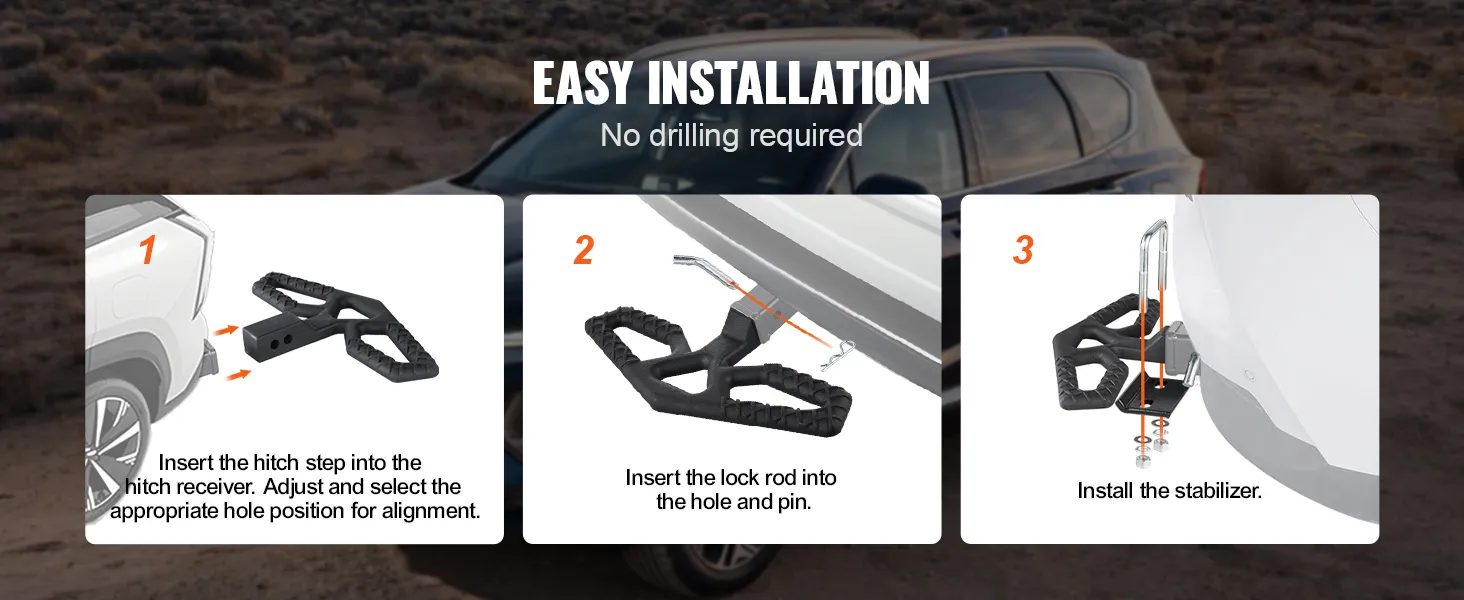Universal Fit: The hitch step can be installed on any vehicle with a standard 2 inch (5 cm) receiver hitch, such as pickup trucks, SUVs, vans, and RVs