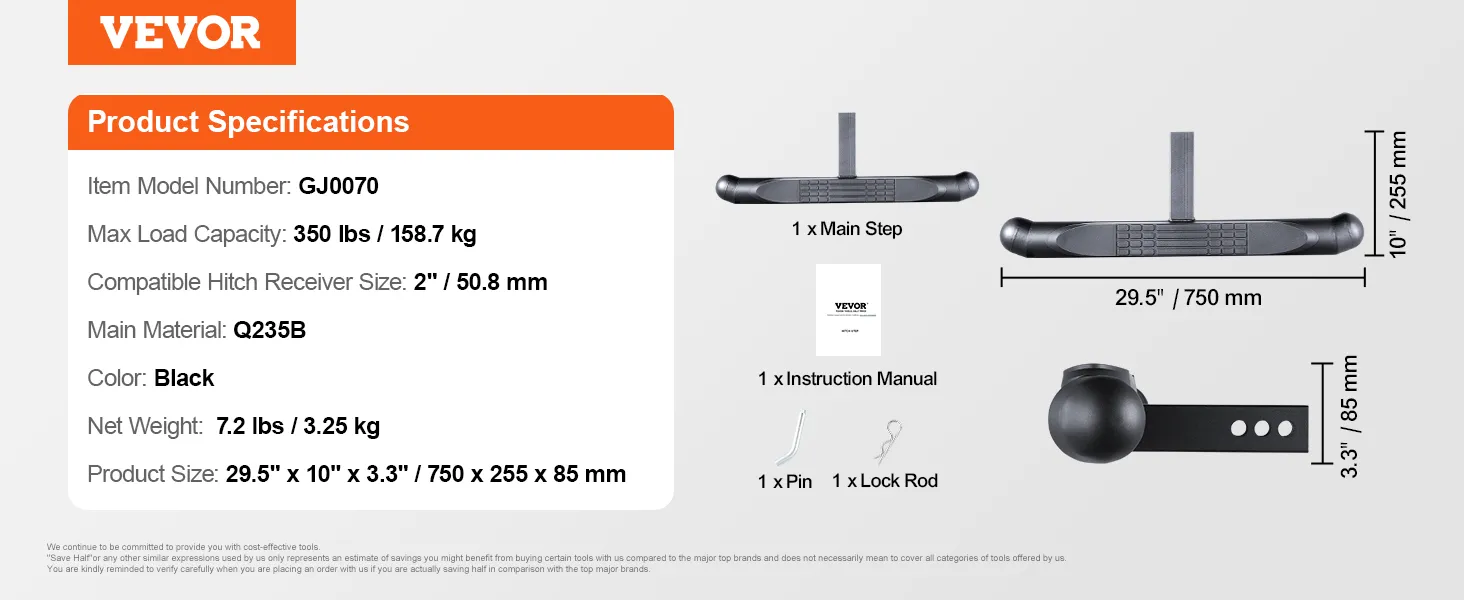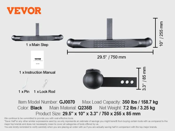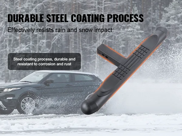 Featuring a steel coating process, our hitch step offers durability with corrosion and rust resistance. It withstands the elements, ensuring long-lasting performance in various environments. Capable of supporting up to 350 lbs, it remains sturdy without bending or collapsing.