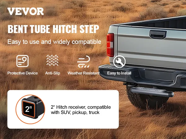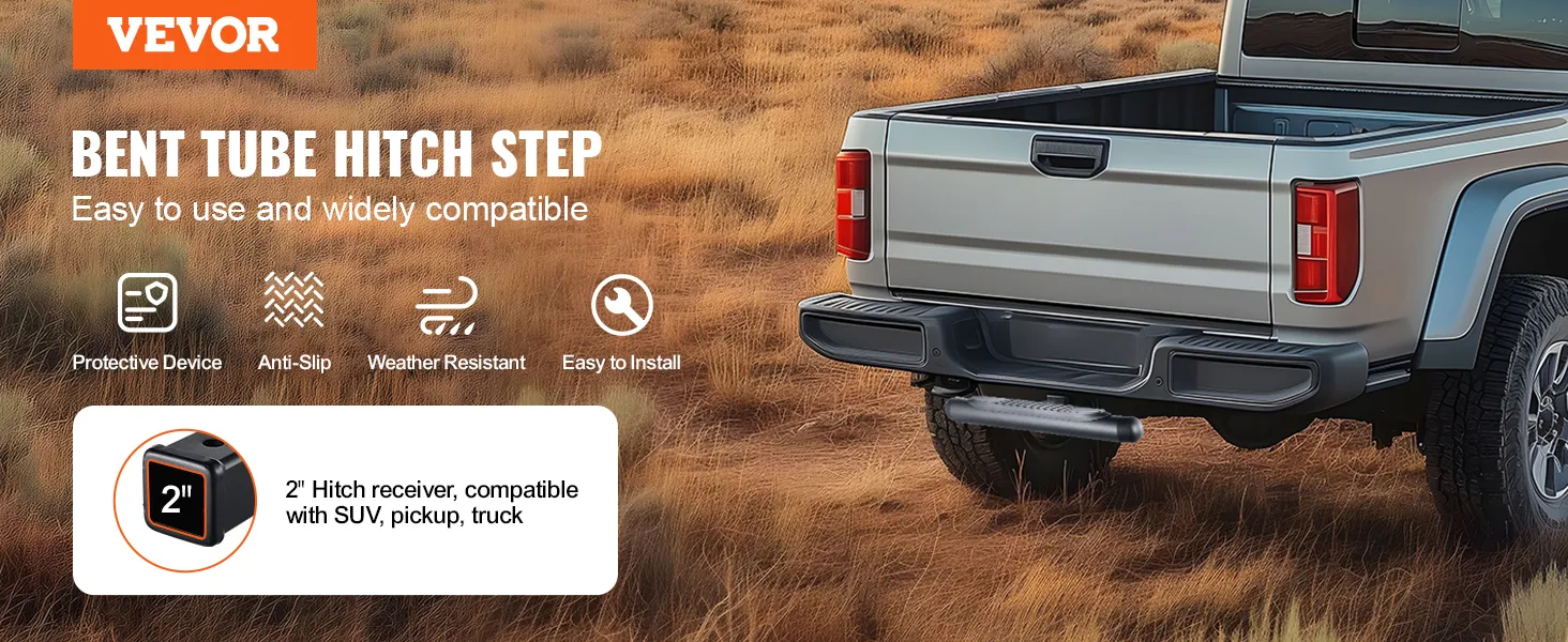 Standard 2" Receiver: This hitch step is compatible with a wide range of vehicles, including SUVs, trucks, and vans, expanding the possibilities for your vehicle. If your current hitch step is damaged, rusted, or worn out, this would be an excellent replacement choice.