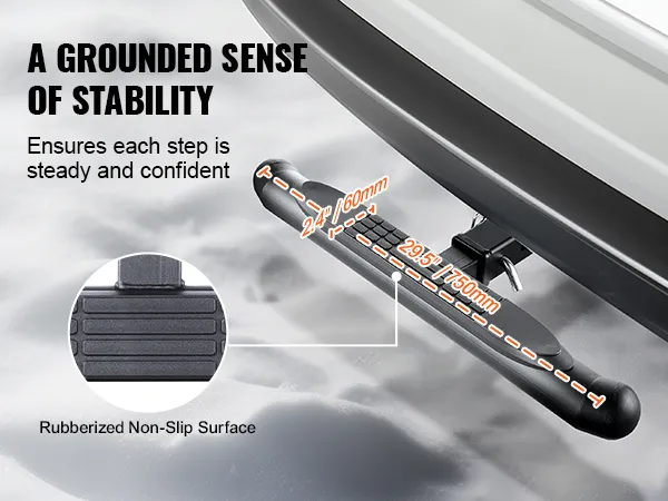 Wide Anti-Slip Step: With a width of 2.4" / 60mm, this hitch step features a textured plastic surface for increased foot traction, effectively preventing slipping. It ensures a secure foothold even in wet conditions, greatly improving comfort when getting in and out of the vehicle. It is friendly for elderly people, children, and pets, offering reliable security.