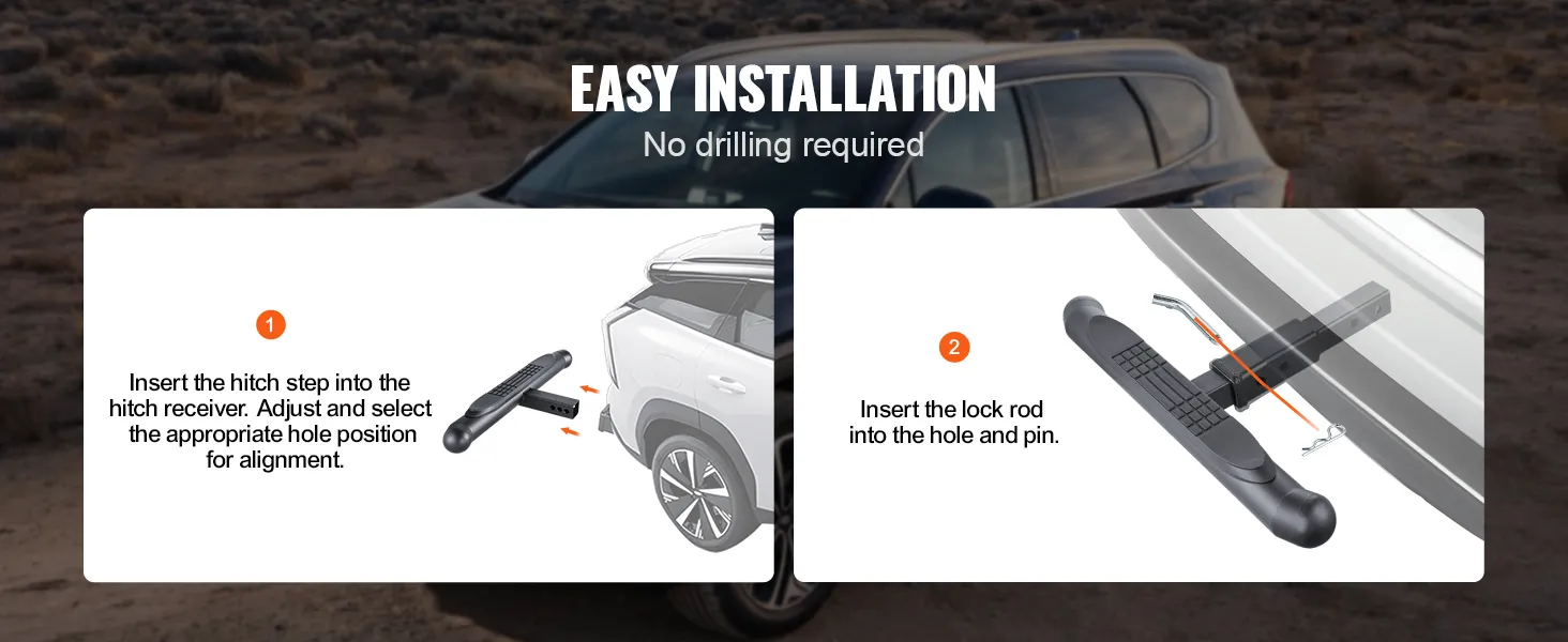 Our hitch step is easy to install with a simple design, requiring no drilling. This ensures a quick and straightforward installation process.