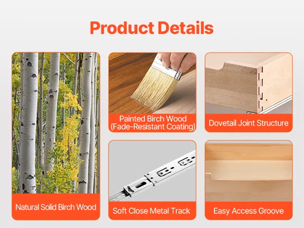 Soft-close metalen rails: De uittrekbare ladekast is voorzien van stevige soft-close metalen rails die volledig kunnen worden uitgeschoven en soepel en stil werken. Wanneer de stoel volledig is uitgeschoven, kan hij een gewicht tot 27 kg dragen. Het soepele uitschuifmechanisme is bestand tegen vervorming, biedt een hoge belastbaarheid en werkt uiterst stil.