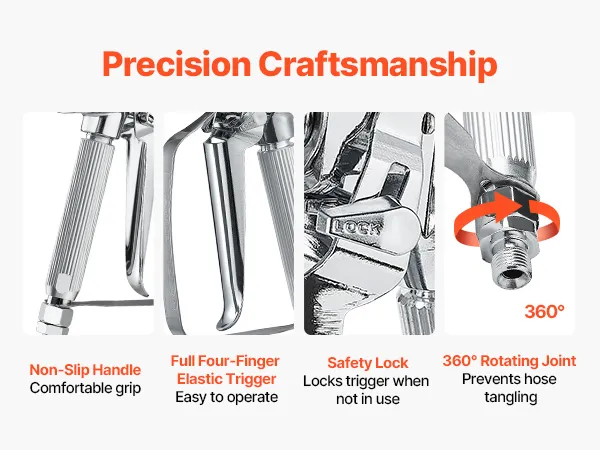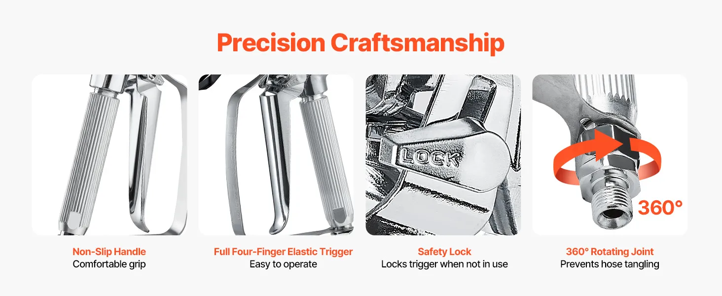Elk detail van de airless spuitpistoolset is zorgvuldig ontworpen om de algehele prestaties en gebruikerservaring te verbeteren, waardoor functionaliteit en veiligheid bij alle toepassingen worden gegarandeerd.